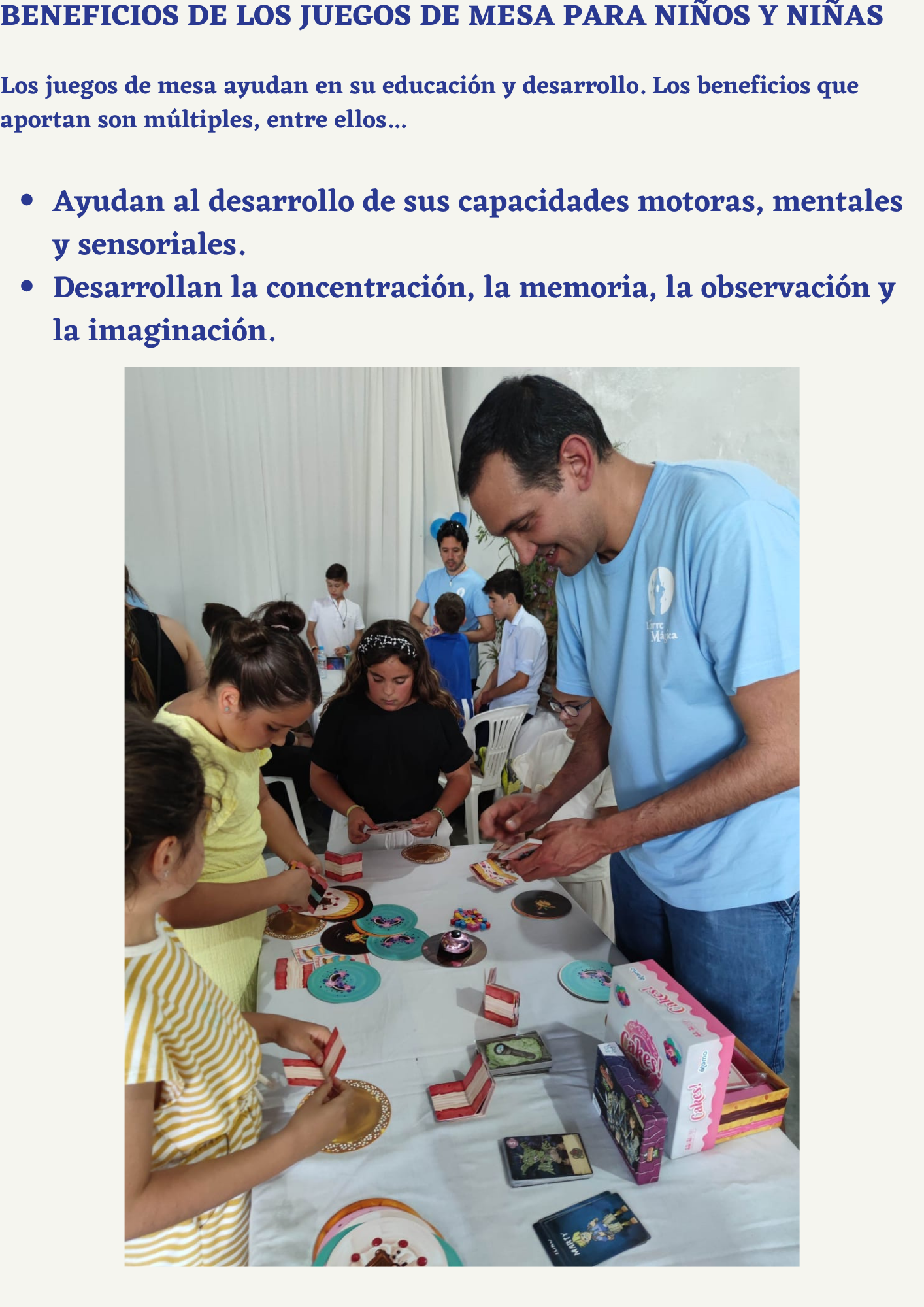 Os dejamos el dosier con algunas fotos de nuestro primer evento de este tipo, tanto como los juegos disponibles y los beneficios que tienen los juegos de mesas en los niños y niñas.
