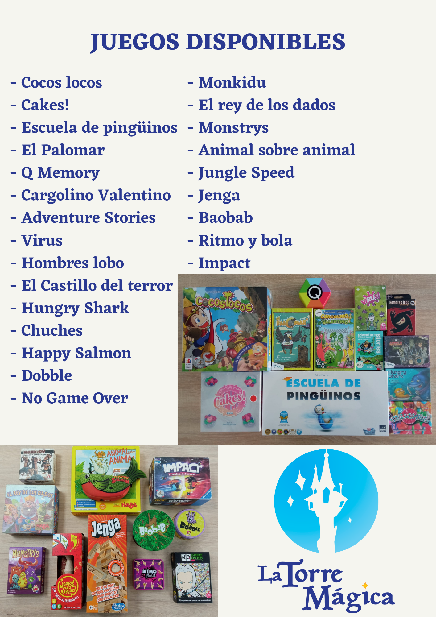 Hemos comenzado a realizar un servicio novedoso en nuestra comarca. Se trata de llevar una ludoteca de juegos de mesa a comuniones, cumpleaños y todo tipo de eventos para niños y niñas.