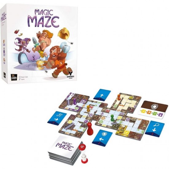 Magic Maze es un juego cooperativo en el que deberemos controlar un elfo, un mago, un enano y un guerrero, los cuales han sido despojados de todos sus bienes y necesitan hacerse con todos sus artículos mágicos.