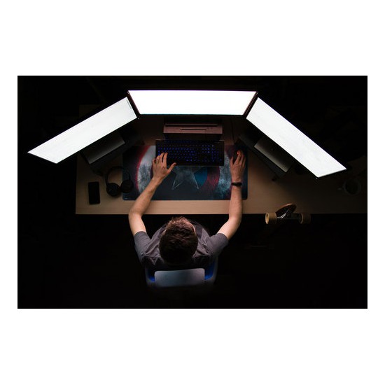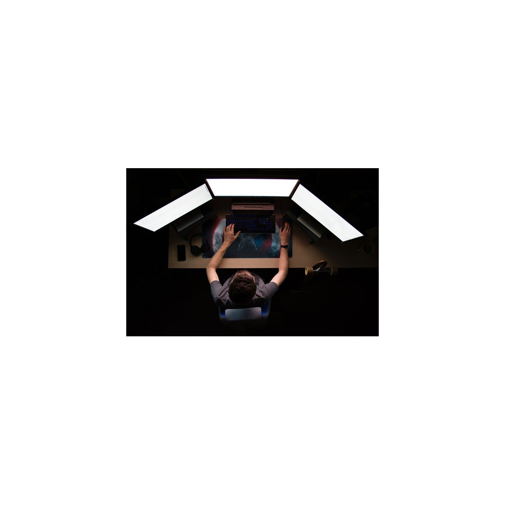 Protector de escritorio de superficie textil de alta densidad, óptima para un uso intensivo, preciso con cualquier tipo de ratón e impermeable. Bordes reforzados y base de goma antideslizante.