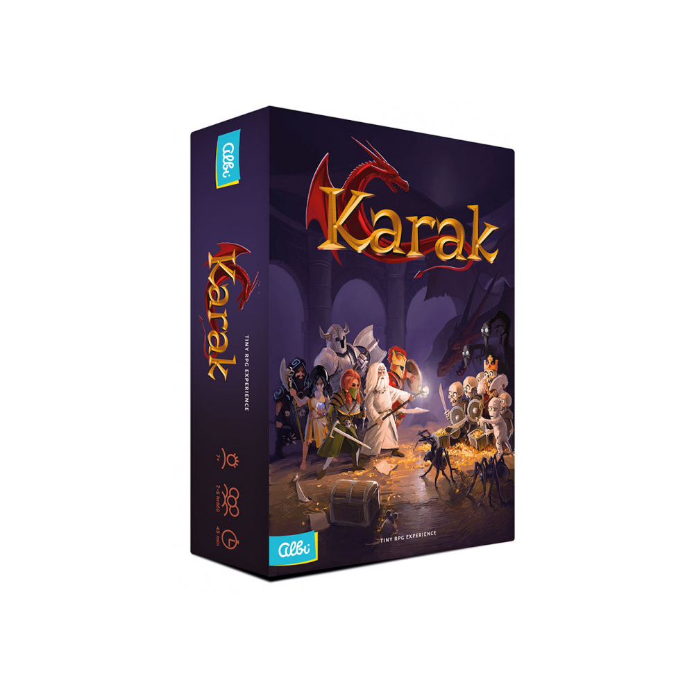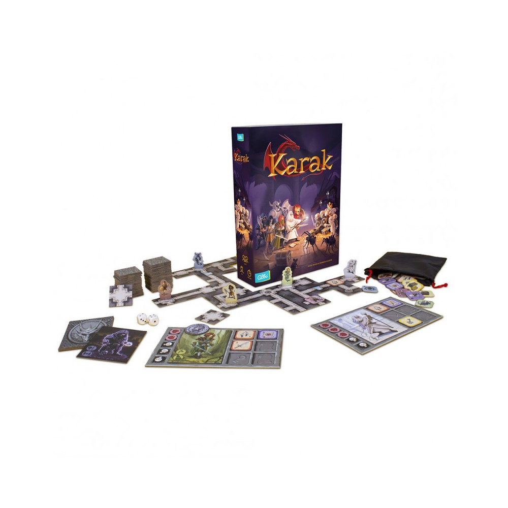 En Karak, cada jugador conducirá uno de los seis diferentes personajes dentro del laberinto de Karak. Pieza a pieza irán descubriendo el aspecto del laberinto - será diferente en cada jugada. Tendrán que luchar contra monstruos, equiparse con armas y echizos y, lo más importante, recoger tesoros. El jugador con el mayor tesoro al final del juego, esel gandor: ¡un verdadero campeón de Karak!