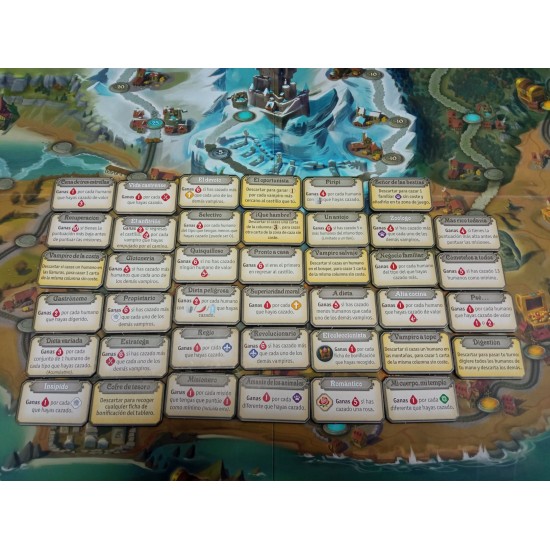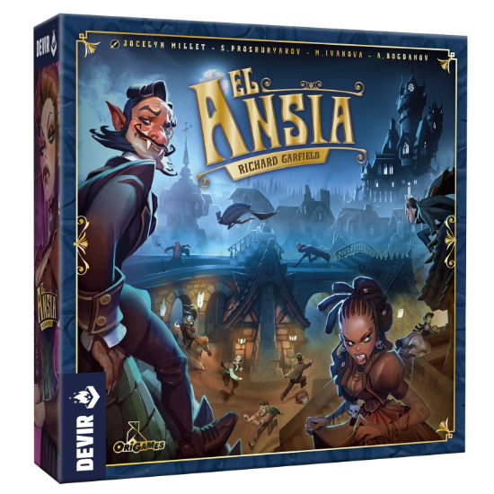 Obra del legendario creador de juegos Richard Garfield, autor de títulos célebres como Magic: The Gathering, King of Tokyo, Treasure Hunter o Bunny Kingdom, El ansia es un juego con mecánicas de construcción de mazos y push your luck (fuerza la suerte) que nos pone en la piel de temibles vampiros sedientos de sangre. Pueden participar de 2 a 6 jugadores, a partir de 10 años, en partidas de una hora de duración. El ansia nos reta a conseguir el máximo número de puntos de victoria cazando humanos, llevando a cabo misiones secretas, consiguiendo el favor de familiares, aprendiendo nuevas habilidades o recolectando la rosa más bella del laberinto. Todo ello a lo largo de 15 turnos y con la condición de regresar al castillo antes que se haga de día, pues tras las primeras luces del alba los vampiros mueren convertidos en ceniza. A lo largo de la partida, los jugadores deberán decidir si invierten sus puntos de movimiento en correr por el mapa o si los emplean para cazar. Si sacian su ansia de sangre, los vampiros avanzarán más lentamente, con lo que será más complicado alcanzar nuevas metas o incluso volver al castillo. De los jugadores dependerá hasta donde están dispuestos a forzar su suerte. Los jugadores explorarán un escenario repleto de zonas y rutas distintas para recolectar valiosas recompensas, a medida que construyen su mano de cartas. Cada vez que cazan a un humano o encuentren a un familiar, por ejemplo, añadirán su carta a su mazo personal. Algunas cartas sumarán poderosas habilidades o puntos de victoria, pero en otros casos habrá penalizaciones o ciertas restricciones. ¡Pensad muy bien a quien dar caza! Al final del turno 15, el vampiro superviviente que sume más puntos de victoria ganará la partida. Con unas mecánicas que recuerdan a los títulos de la famosa saga Clank!, El ansia es una carrera frenética a contrarreloj en la que la estrategia será vital para lograr la victoria. Apto para todo tipo de jugadores, desde los más experimentados a los más esporádicos, El ansia cuenta con dos modos de juego para adaptar el nivel de dificultad a cualquier grupo de participantes. Una experiencia que encantará a los amantes de los géneros gótico y oscuro, pero también a los aficionados a los juegos con mecánicas de construcción de mazos o push your luck. ¿Lograréis encontrar el equilibrio entre el ansia y la gula, sumar más puntos y llegar de una pieza al castillo antes del alba?