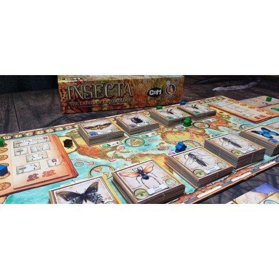 INSECTA es un juego de tablero en el que recorrerás el mundo recolectando insectos. Amplía tu colección a medida que progresa el juego y consigue reconocimiento por tu labor científica