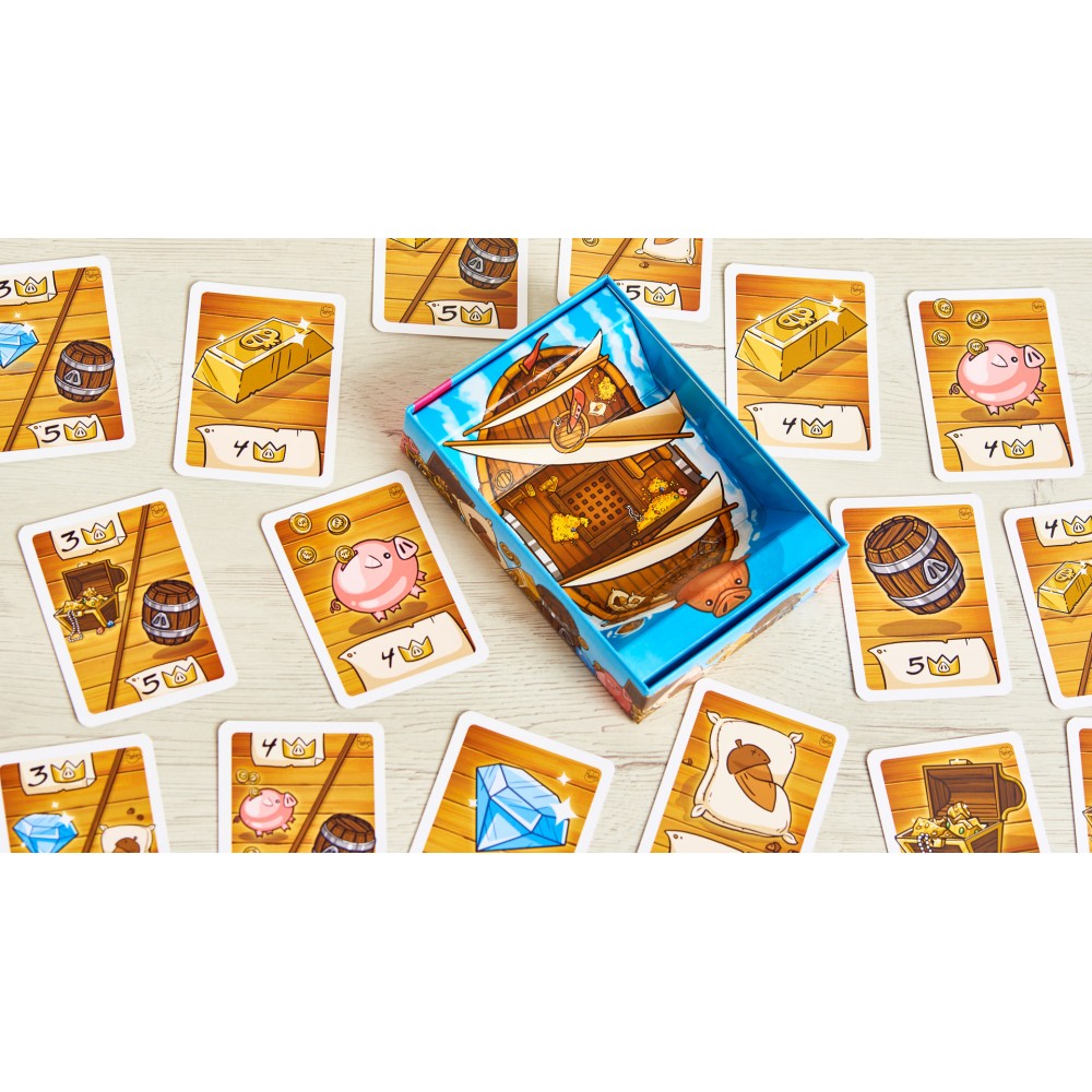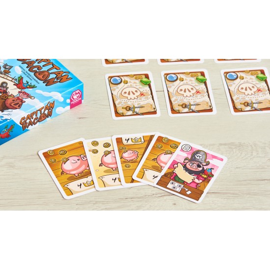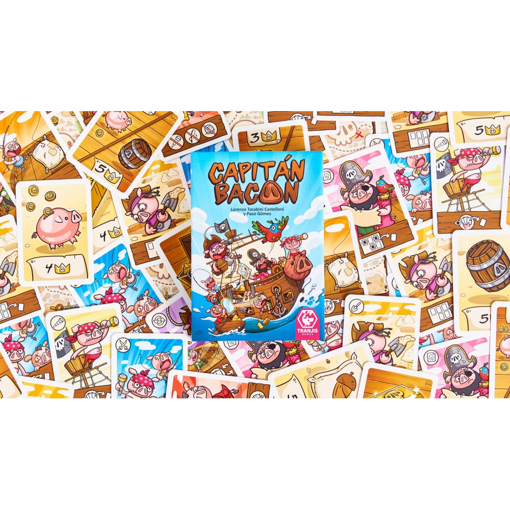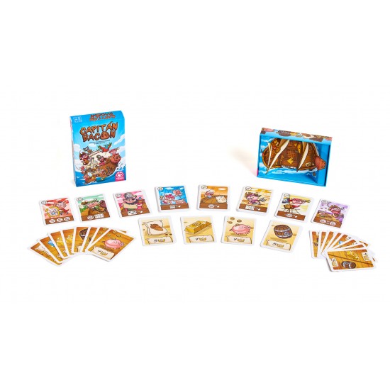 Capitán Bacon es un juego de gestión de mano en el que tendrás que conseguir diversos tesoros para ganar. Juega bien tus cartas para tu beneficio y para perjuicio de tus rivales y entierra tesoros para esconderlos o tratar de despistar.
