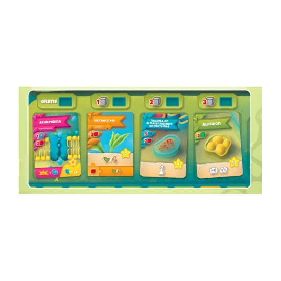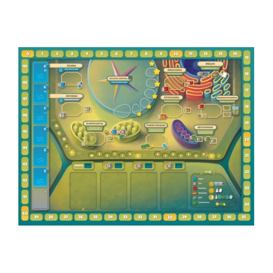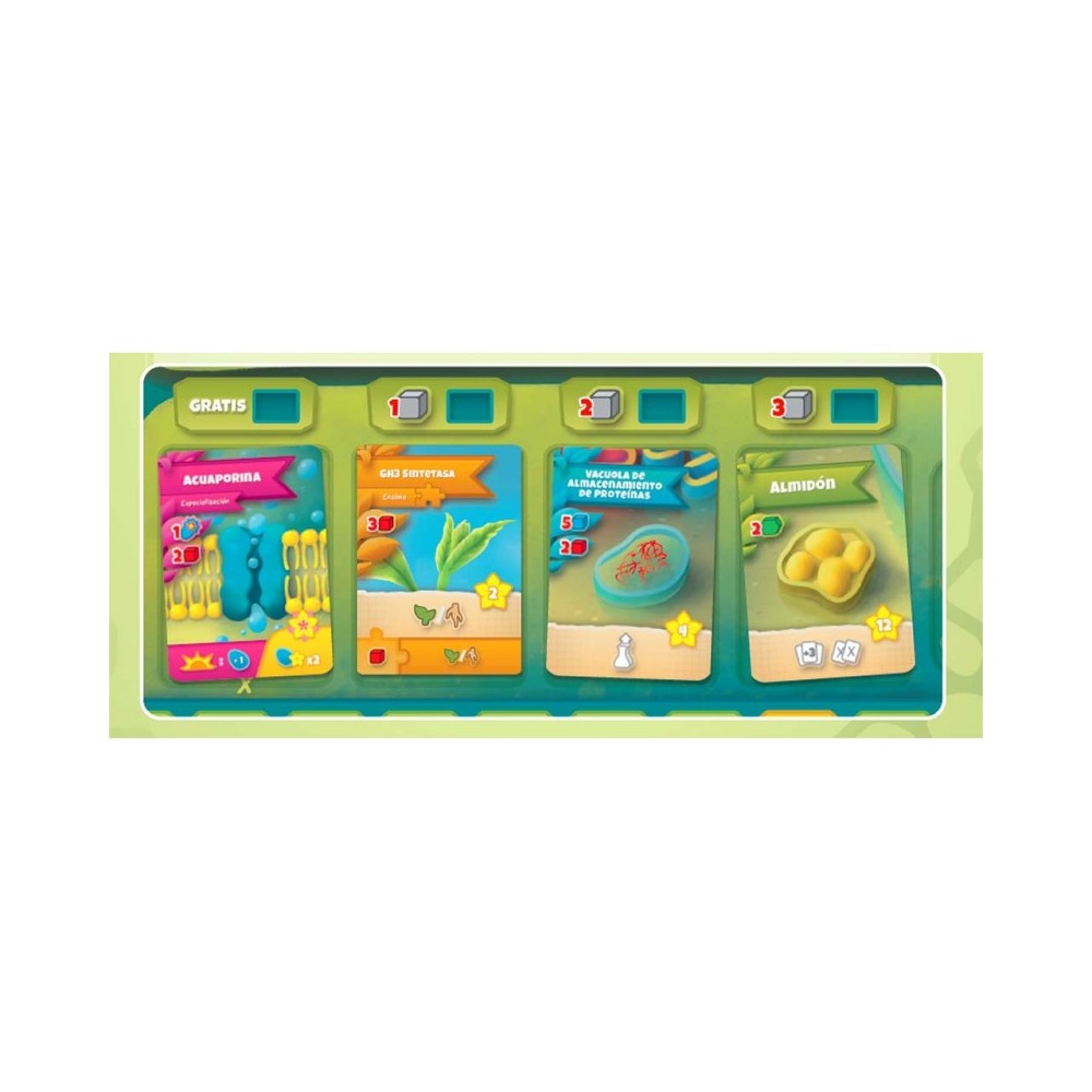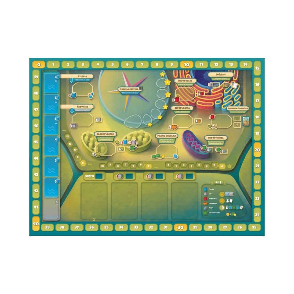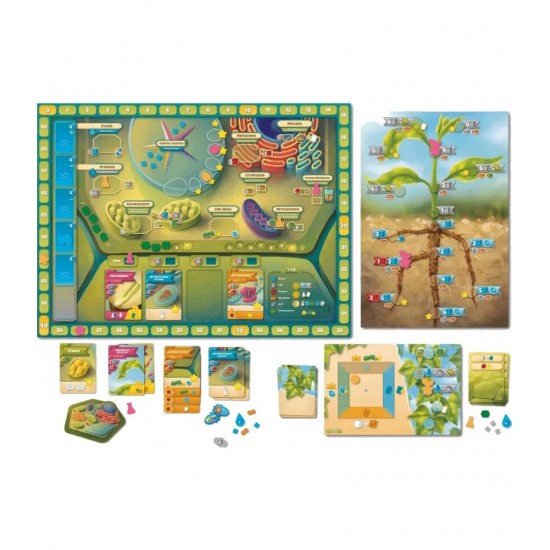 Mientras el sol brille, se activarán los orgánulos y se llevarán a cabo las acciones relacionadas, se obtendrán y convertirán recursos, y podréis jugar poderosas cartas de componentes celulares mientras expandís la pared celular para maximizar las posibilidades de obtener puntos de salud. Produce hormonas de crecimiento vegetal para aumentar la cantidad de recursos que percibes, aportar más agua que tus amigos a la vacuola central te permitirá desarrollar acciones adicionales. Una vez que la pared celular está terminada, también concluirá la partida. Aquel que mejor optimice sus acciones saldrá victorioso.