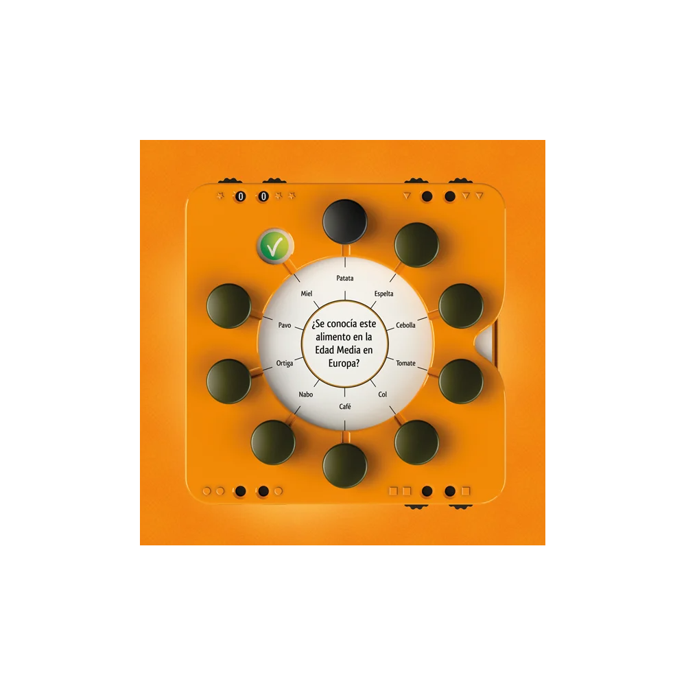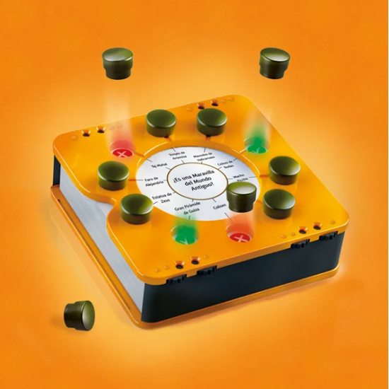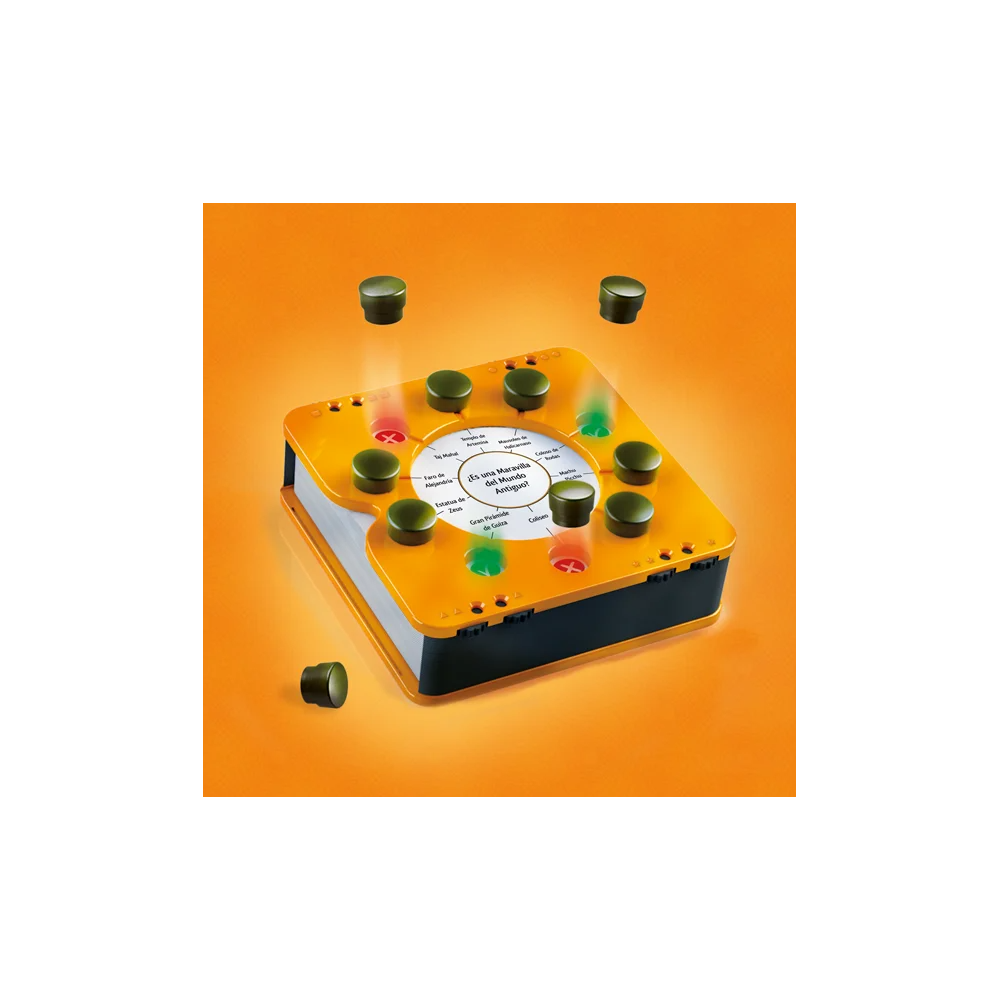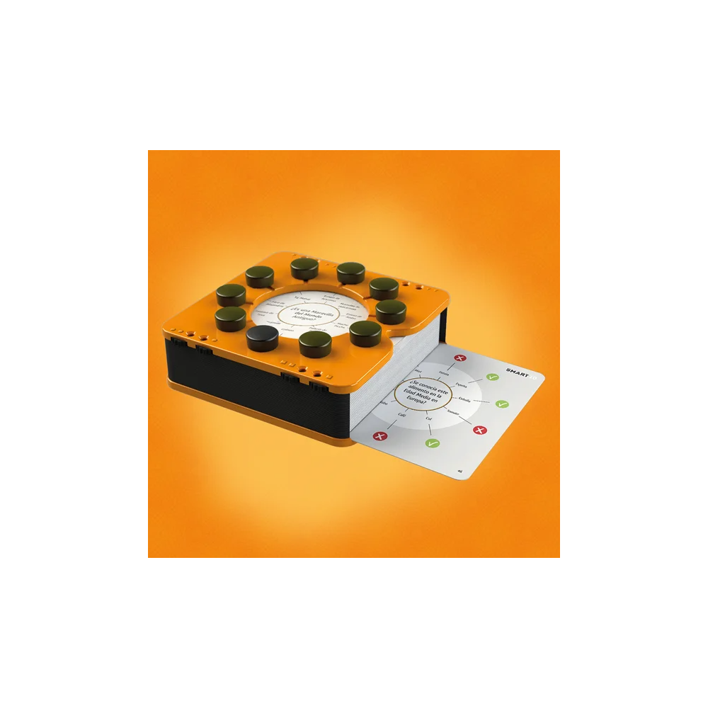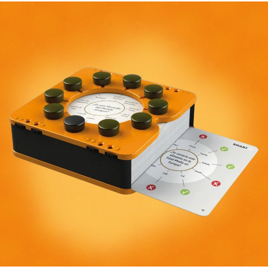 Todo el juego está incluido en la compacta caja Smart: las 200 preguntas y sus respectivas respuestas, los conta-dores de puntuación y los marcadores.
