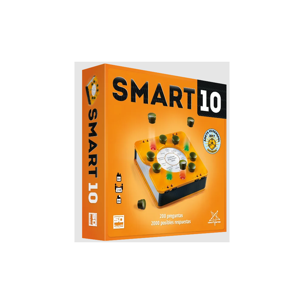 Smart10 es un juego de preguntas donde los jugadores no deberán esperar demasiado su turno. Las preguntas ofrecen 10 posibles respuestas y todos los jugadores tendrán la oportunidad de contestar en cada una de las preguntas. Si tu respuesta es correcta, recibirás un marcador. Pero, ¿debes contestar o pasar? Recuerda que si no aseguras tus marcadores a tiempo, podrás terminar perdiéndolos todos.