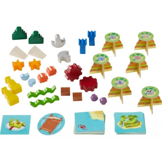Sol, mar… y ¡muchos objetos a la deriva! Es hora de recoger todos los restos que han sido arrastrados hasta la isla. Los jugadores/as apilan los objetos uno a uno estratégicamente sobre la balsa y los transportan de una isla a otra. Pero, ¡cuidado! Hay que tener buen pulso; de lo contrario, los objetos caerán por la borda. Gana quien tenga más conchas al final.