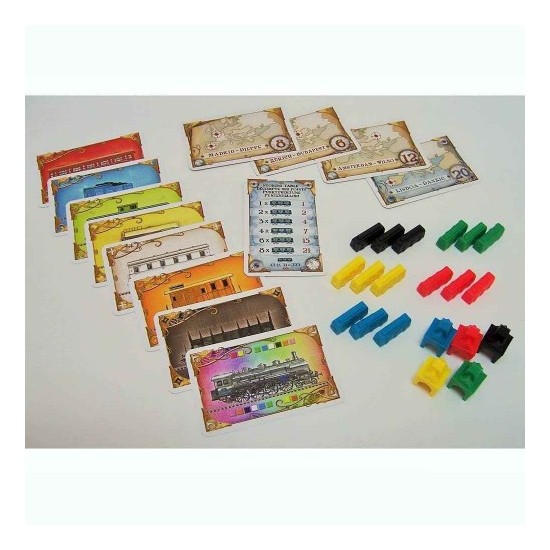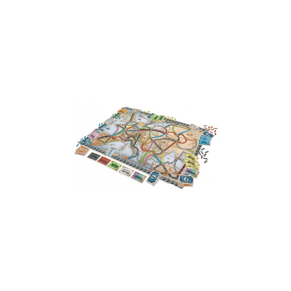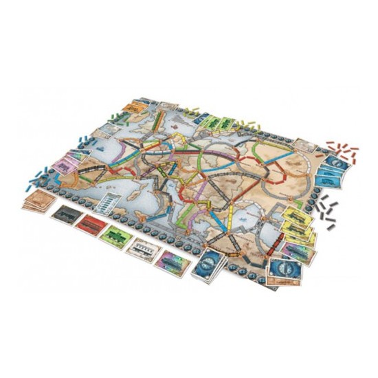 ¡Aventureros al Tren! Europa te invita a una nueva aventura en tren a lo largo y ancho de la Europa de fin de siglo, desde las escarpadas laderas de Edimburgo hasta los soleados muelles de Constantinopla, desde los polvorientos callejones de Pamplona hasta una estación azotada por el viento en Berlín. ¿Te arriesgarás a un viaje a través de los oscuros túneles de Suiza? ¿Te subirás al ferry del Mar Negro? ¿O construirás estaciones de tren en las grandes capitales de los antiguos imperios? ¡Tú siguiente movimiento puede convertirte en el mayor magnate ferroviario de Europa! ¡Aventureros al Tren! Europa es un juego de sencilla elegancia, sus reglas pueden aprenderse en 5 minutos, y gustará tanto a familias como a jugadores experimentados. Esta caja contiene un juego completo, que no requiere la versión original de ¡Aventureros al Tren!, ganadora del premio internacional Spiel des Jahres.