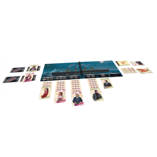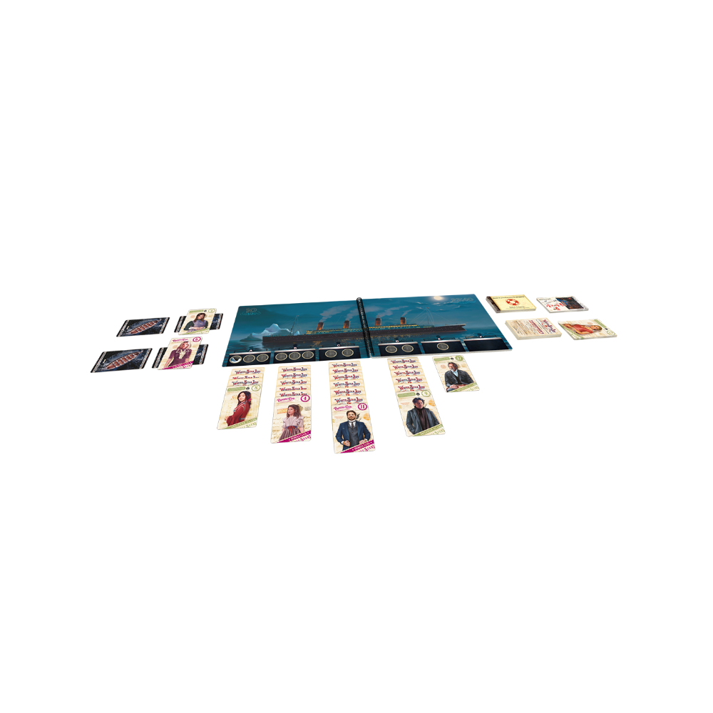 Cada jugador tomará una carta distinta de tripulante, cada una de ellas con habilidades y características distintas. La zona de juego está formada por un cuaderno, que a través de sus páginas representa el hundimiento progresivo del Titanic, y una baraja de 60 cartas con los pasajeros que hay que salvar y que se agolpan en filas a través de los camarotes, esperando llegar a uno de los botes.