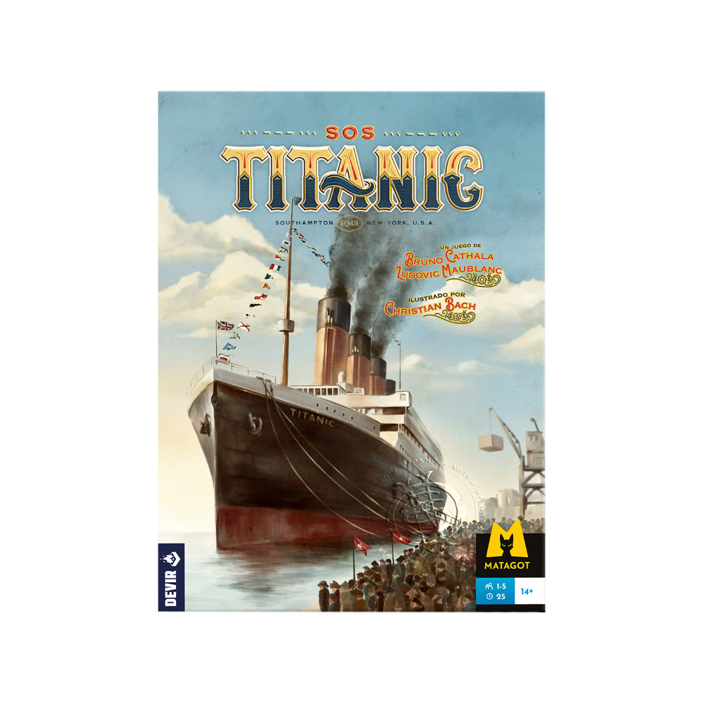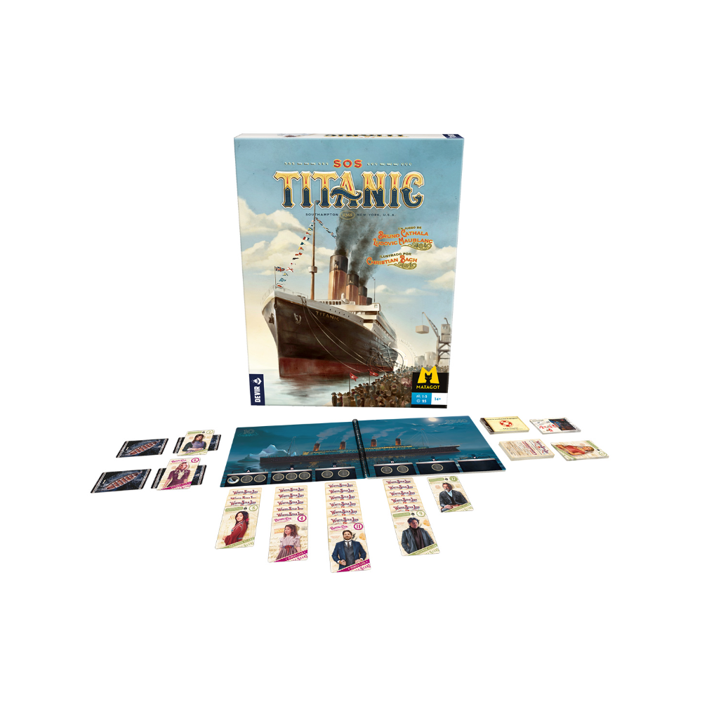 SOS Titanic es un juego diseñado por los célebres Bruno Cathala y Ludovic Maublanc (ambos ya habían colaborado para crear otros títulos como Mr. Jack, Dice Town o Cyclades) e ilustrado por Christian Bach. Se puede disfrutar en solitario o en partidas cooperativas de hasta 5 jugadores, a partir de 14 años. El título nos propone recrear el fatídico viaje inaugural del Titanic, ocurrido hace 111 años, en abril de 1912, y tomar el papel de miembros de la tripulación. Solos o en equipo, los jugadores ganarán puntos salvando tantos pasajeros como sea posible.