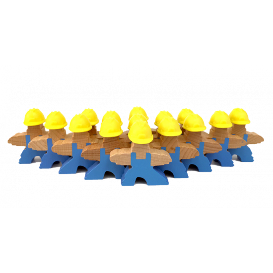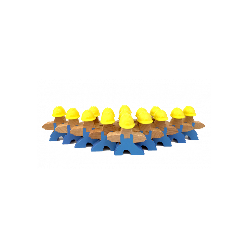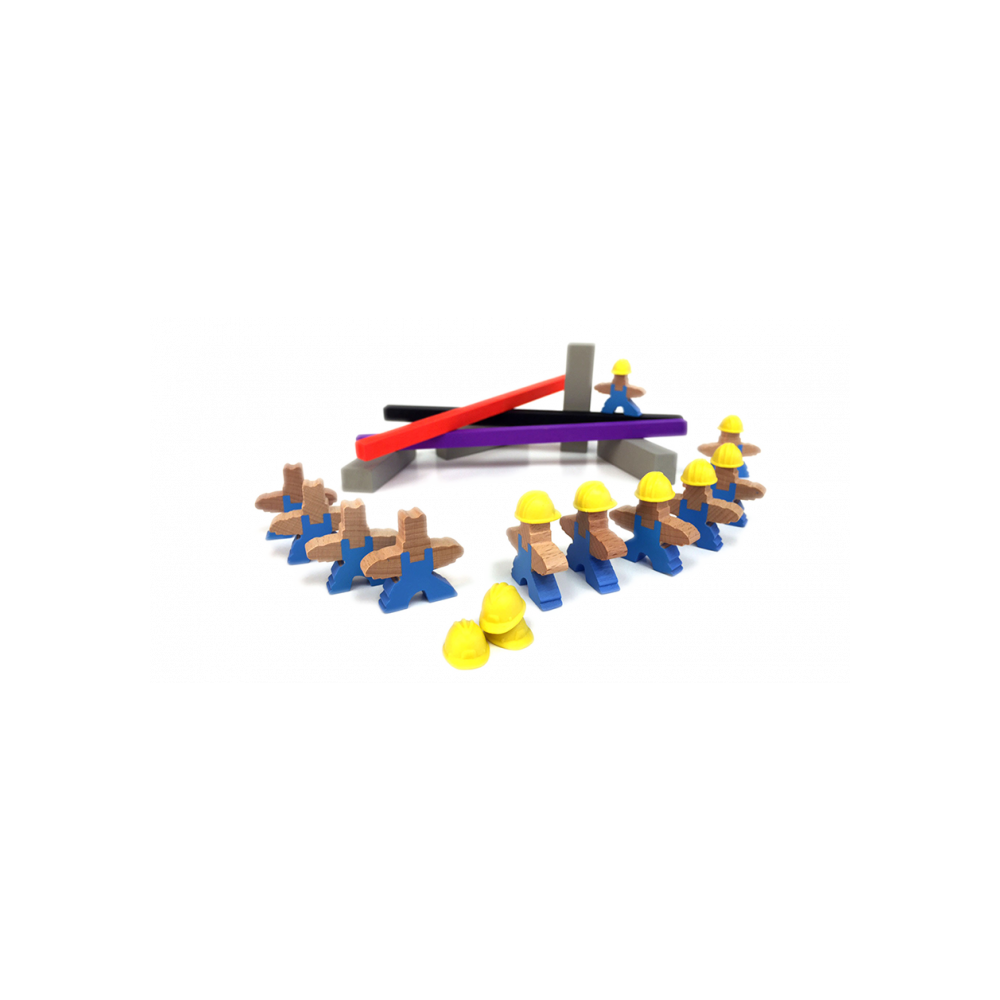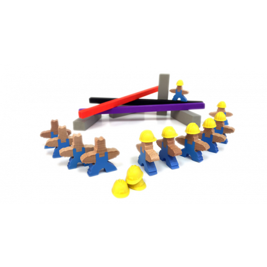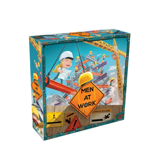 Men At Work es un juego de apilamiento y equilibrio en el que los jugadores compiten como trabajadores en un terreno en el que están construyendo cuidadosamente una torre para evitar accidentes y, tal vez, ganar el premio al Empleado del Mes. El juego incluye tres módulos de juego para añadir rejugabilidad, así como componentes de madera alojados dentro de un inserto bien diseñado para una fácil preparación.