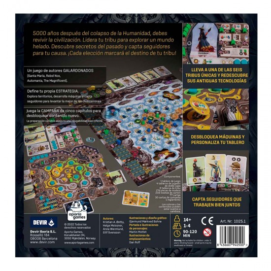 Si los tableros personales son todo un alarde, el tablero central no se queda atrás. Desde la grieta central, los jugadores deberán explorar los territorios en busca de asentamientos que poblar y zonas ricas en recursos para intentar construir estructuras a su alrededor. Por otro lado, cada tribu cuenta con un poder especial que puede orientar la estrategia desde el comienzo de la partida.