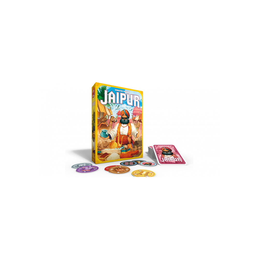 En Jaipur, el objetivo es convertirse en el mercader personal del Maharajá consiguiendo más riquezas que tu oponente al final de cada ronda. Para ello, consigue e intercambia productos en el mercado y luego véndelos para obtener rupias. Si consigues hacer una venta grande (tres cartas o más), recibirás una ficha de Bonificación.