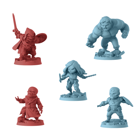 7 miniaturas de Héroe 3 miniaturas de Villano, 84 cartas de Héroe, 3 tableros de Villano, 36 cartas de Plan maestro, 18 cartas de Amenaza, 8 Lugares, 1 guía de misiones, 3 cartas de Misión, 3 cartas de Desafío , 156 fichas , 1 medidor de Villano y 1 reglamento.