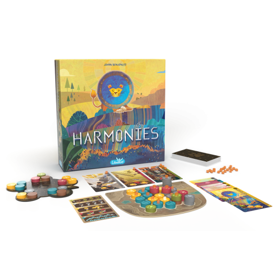 Harmonies es un juego de tablero, editado por Libellud, donde tendréis que crear un mundo en el que los animales vivan en completa armonía con la naturaleza.