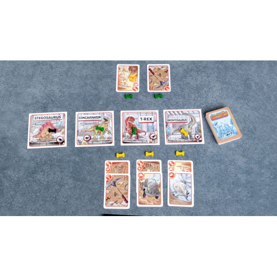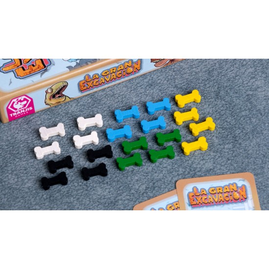 La Gran Excavación es un juego de cartas sencillo en el que tendréis que trasladar los fósiles de los dinosaurios a vuestro museo. El primero que consiga los 4, ganará la partida!