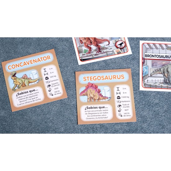 Además aprenderás varios datos curiosos de cada uno de los 4 dinosaurios. Dale la vuelta a la tarjeta del dinosaurio y lo descubrirás.