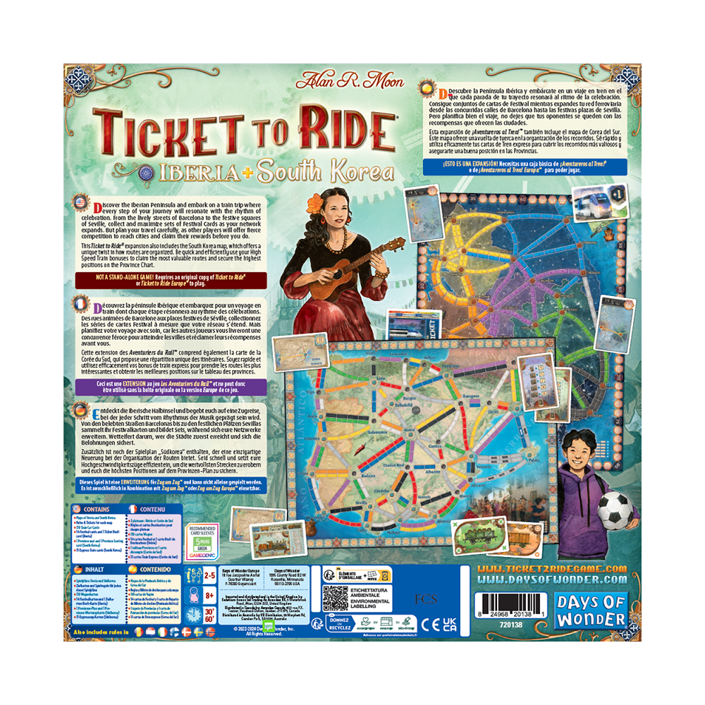 Esta expansión de ¡Aventureros al Tren!™ también incluye los mapas de la Península Ibérica y Corea del Sur.