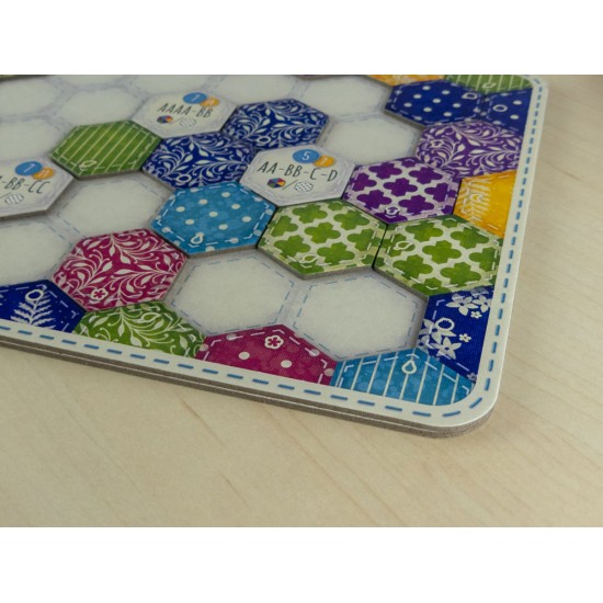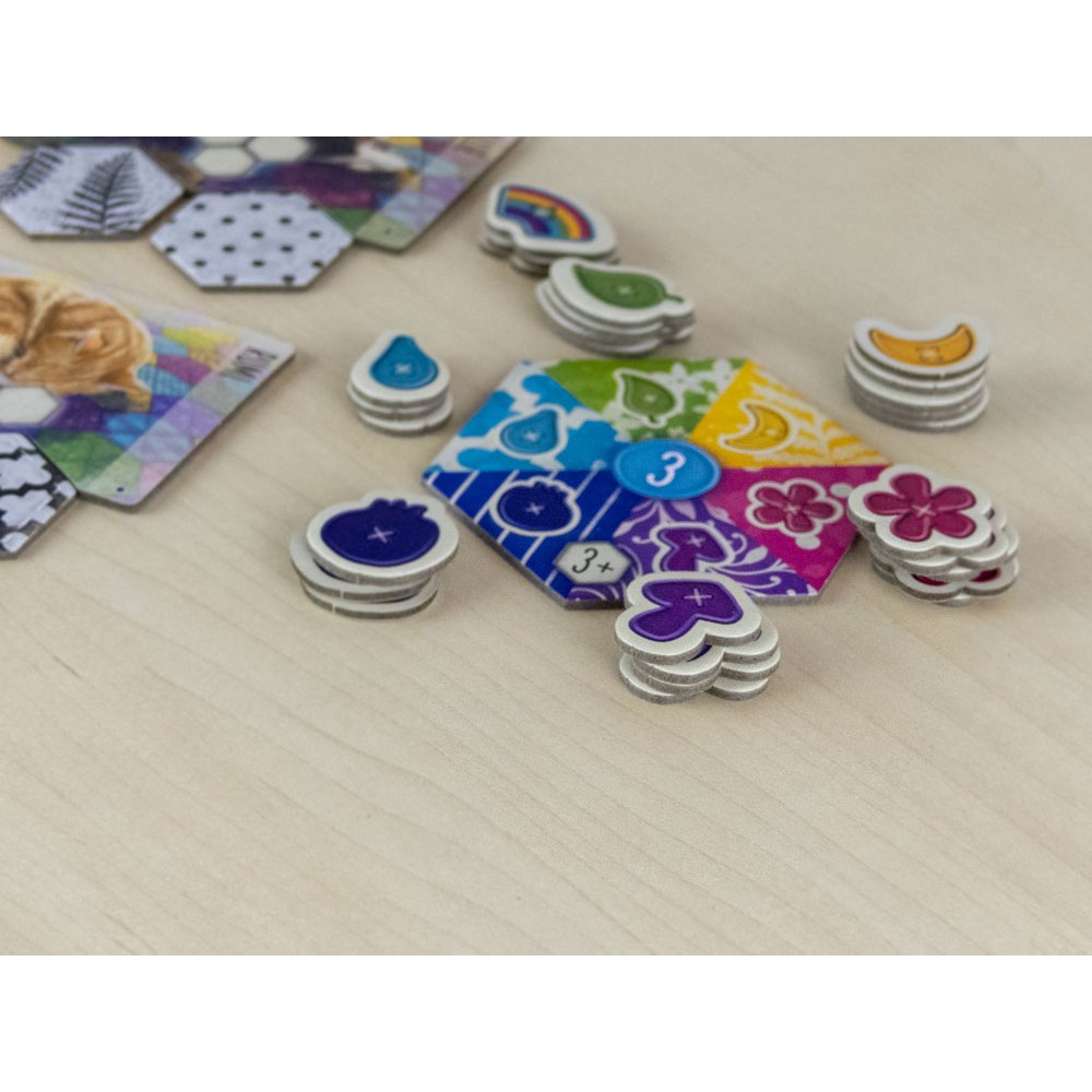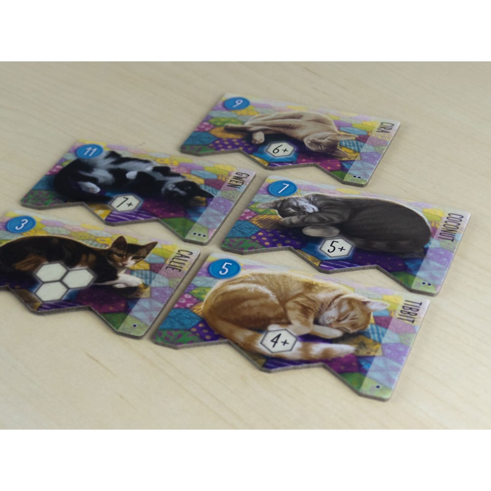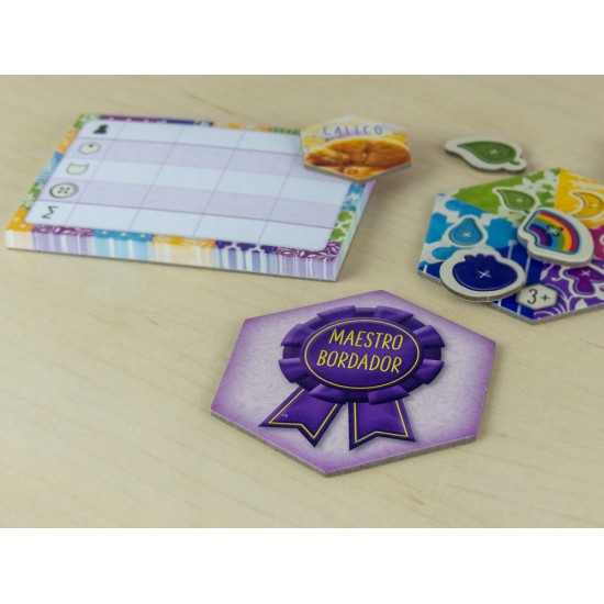 En Calico, los jugadores compiten para tejer la colcha mas cómoda cogiendo y colocando parches de diferentes colores y estampados en su tablero de colcha. Cada tablero tendrá 3 objetivos de diseño que otorgarán puntos si se cumplen sus requisitos. Los jugadores intentarán además crear grupos de estampados para atraer a los gatos más adorables y grupos de colores en los que coser botones. ¡El jugador que obtenga más puntos por sus diseños, gatos y botones, gana la partida