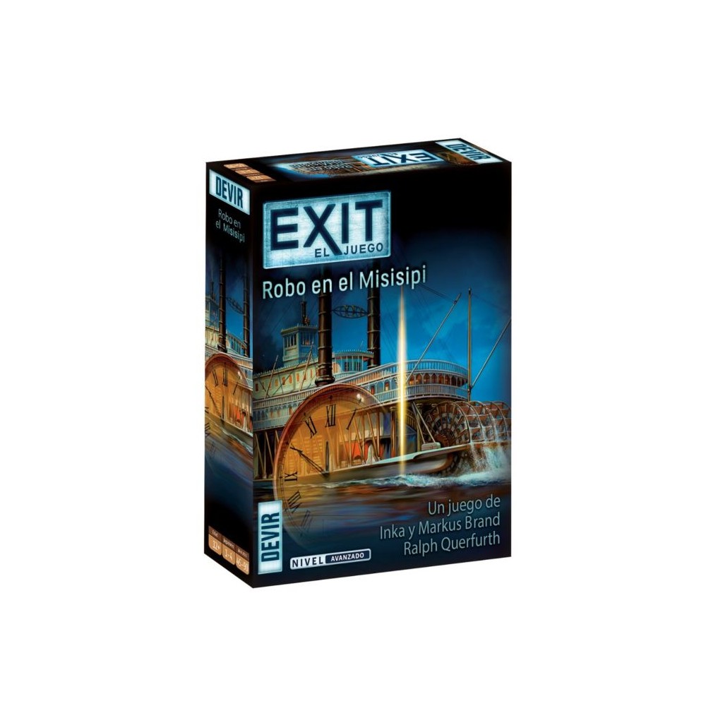 "Exit: Robo en el Misisipi" te traslada al universo de los juegos con temática "escape room". En esta ocasión, viviréis aventuras en el Mississippi, a bordo de un gran barco de vapor en el cual se produce un robo. Tendréis que conseguir encontrar al culpable antes de que el barco llegue a Nueva Orleans y el ladrón pueda escapar.