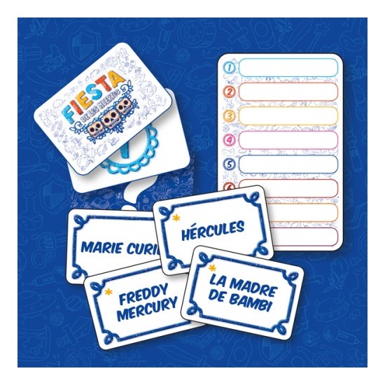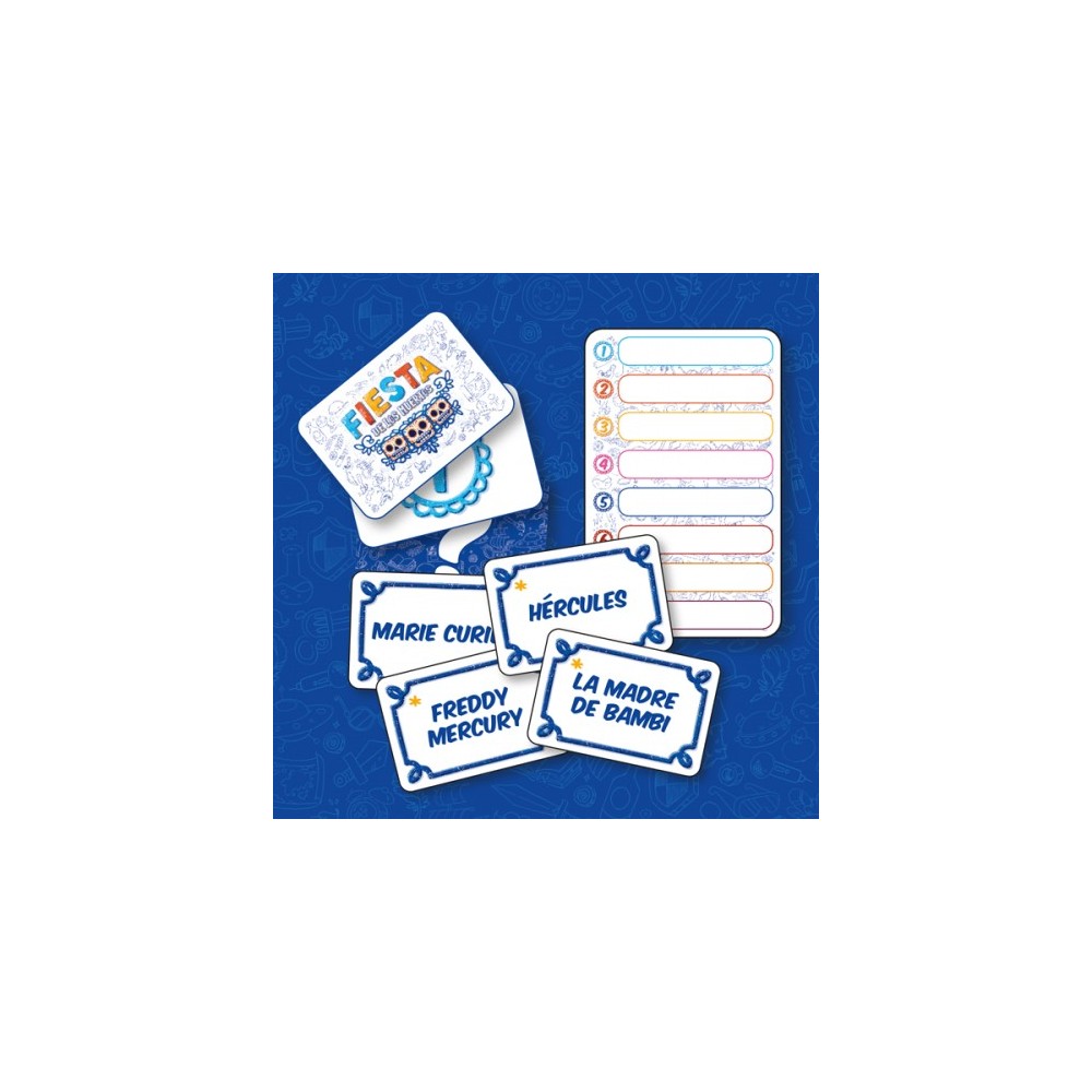 Fiesta de los muertos es un juego cooperativo en el que los jugadores tendrán que adivinar los personajes difuntos presentes en la partida. Elige una palabra para describir a tu personaje fallecido. Pero cuidado, esta palabra pasará de mano en mano, y cambiará poco a poco... ¿Podrás encontrar a tu personaje y al de los demás jugadores?
