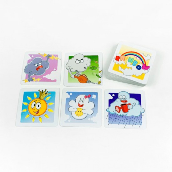 Rainbow es un Juego de cartas infantil donde los jugadores tendrán que formar su propio arcoíris, a pesar de que las nubes, el viento y las tormentas no lo pondrán nada fácil.