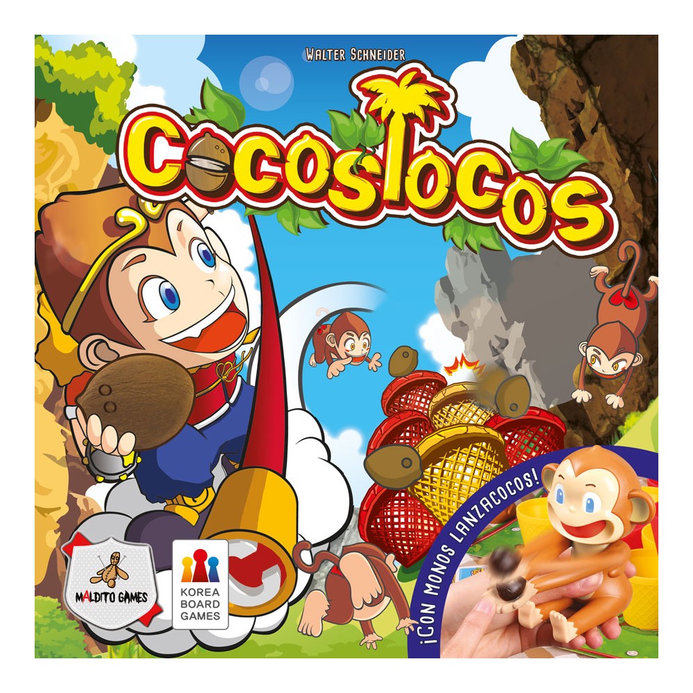 Cocos Locos es un juego familiar en el que los jugadores lanzan cocos hacia un campo cubierto de cestas en el centro de la mesa. Apunta bien con tu mono lanzador para encestar los cocos y conseguir las cestas. ¡Podrás usar cartas mágicas a tu favor o contra tus rivales!
