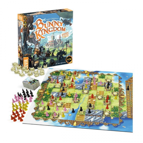 Bunny Kingdom es un juego de mesa diseñado por Richard Garfield, en donde podrás liderar un clan de conejos hacia la gloria, cosechando las preciadas zanahorias doradas, recolectando recursos, dominando territorios y construyendo/uniendo nuevas ciudades a través del reino.