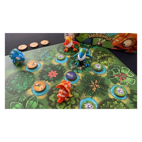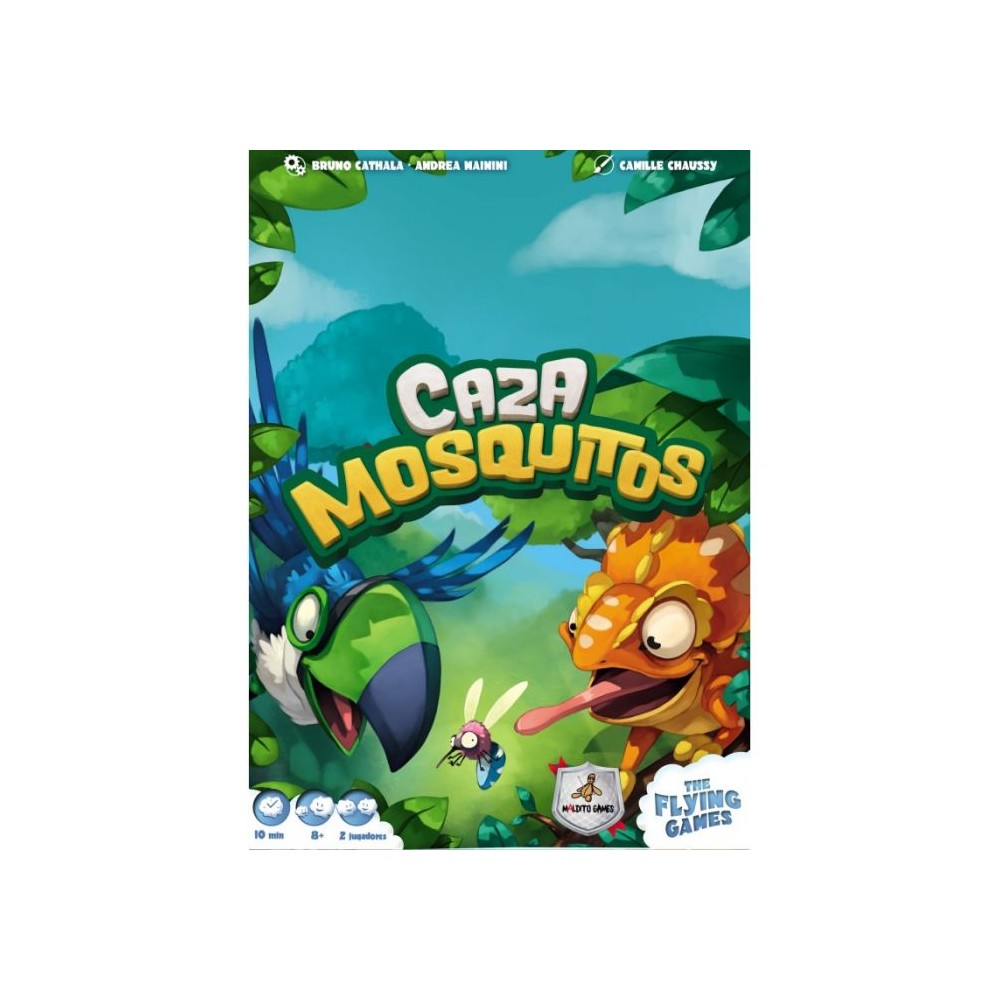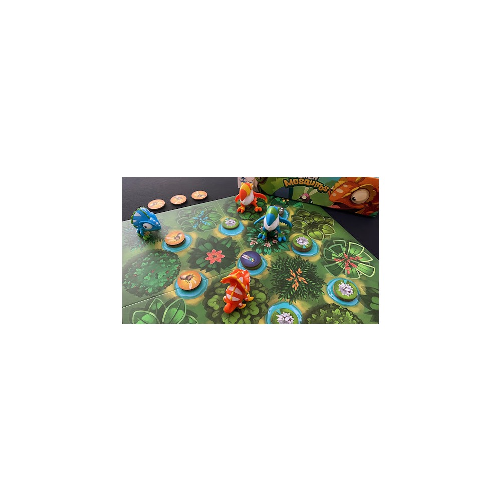Controla bien al camaleón y al tucán y aliméntales con los mosquitos necesarios para poder avanzar sobre el tablero. "Cazamosquitos" es un juego de táctica y estrategia, previsto para 2 jugadores.