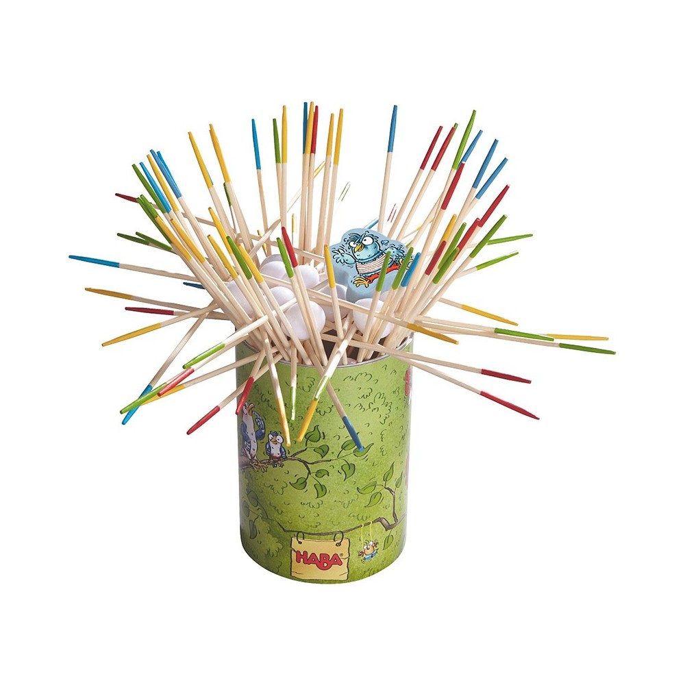 ¿Quién ayudará al cuco Kiko a construir un nido para todos los huevos a partir de los palitos? Pero... ¡Cuidado! En cuanto haya un par de buenas ramitas en el nidal, deberás colocar un huevo de cuco. Si el nido está a medio construir, algún huevo podría salir rondando. Solo con tacto y un poco de suerte serás el primero en poner todos los huevos en el nido y podrás dejar al cuco Kiko en su nidada.