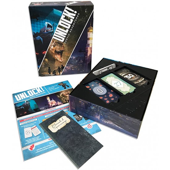 Unlock: Exotic adventures es un juego de cartas cooperativo inspirado en las salas de Scape Room. Unlock: secret adventures cuenta con tres aventuras diferentes, con distintas ambientaciones que deberás de resolver a tiempo para ganar.