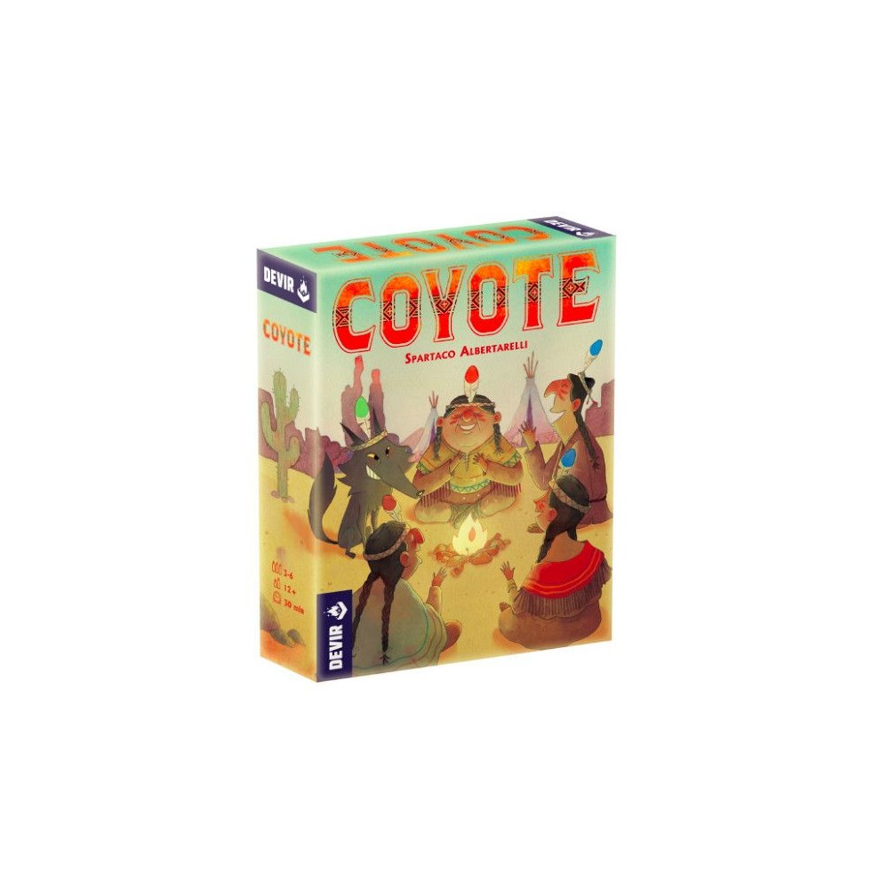 En Coyote, los participantes se meten en el papel de los indios y deben ponerse una cinta en la cabeza con una "pluma" numerada. El objetivo es adivinar la suma de los valores de todas las "plumas" ¡sin conocer el valor de la tuya! ¡Quien falle será todo un coyote!